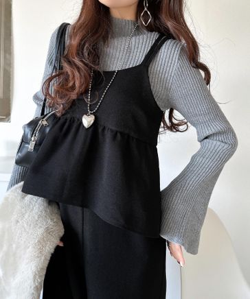 華奢見え華やかシルエット◎ダブルストラップペプラムサロペットce1265035