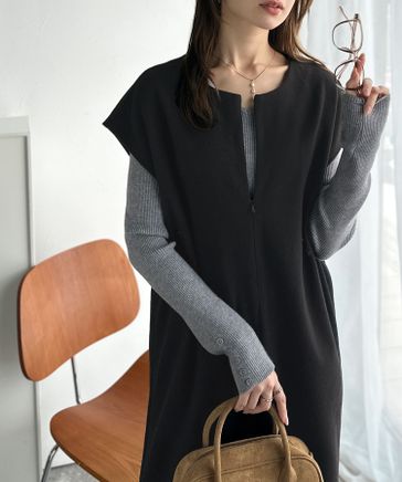 レイヤードコーデが楽しめる!フェイクウールハーフジップオールインワン(パンツ)ce1010494