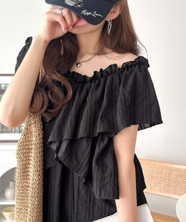 気になるラインをふわっと包むデザイン。2wayフリルオフショルオールインワンce1070216