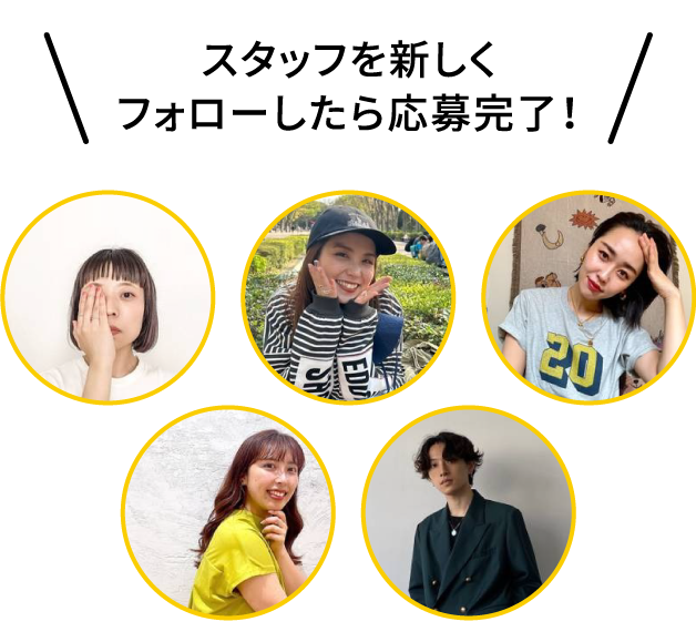※10月15日(水)9:00~10月21日(火)23:59までの期間中に、1人以上スタッフをフォローした方が対象のキャンペーンになります。期間中にフォローを解除した場合、対象外となります。