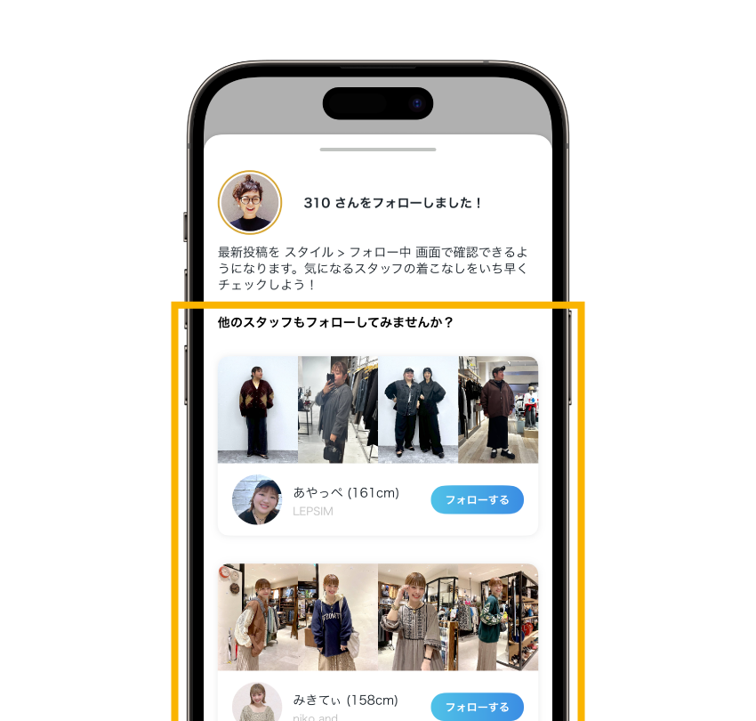 2.スタイリングページの上部にある「フォローする」をタップで完了!