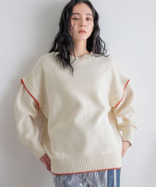 RAGEBLUE ボリュームスリーブ/袖デザインモールニット:カラー54