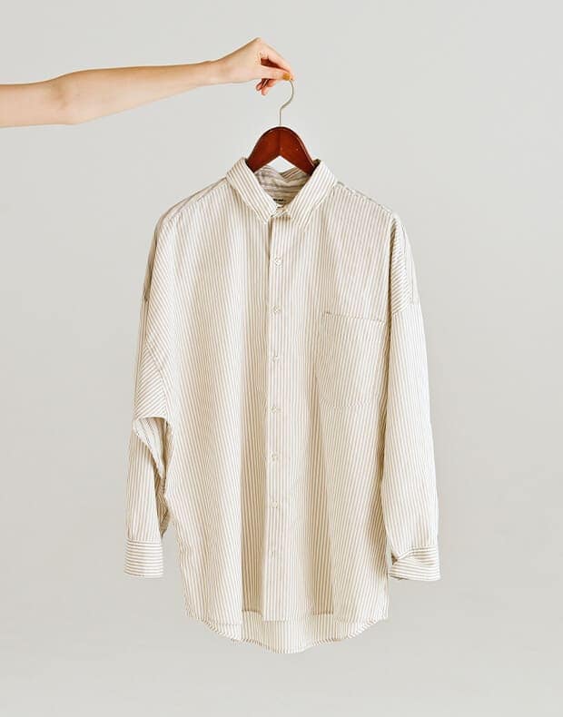 スタンダードなシャツをベースに、ドルマンスリーブでゆったりと着用できるこちらのシャツ。襟にはワイヤーが入っているので、立てたり落ち着かせたりと思い通りに動かすことが可能です。無地とストライプ、チェックのバリエーション豊富な3パターン展開。