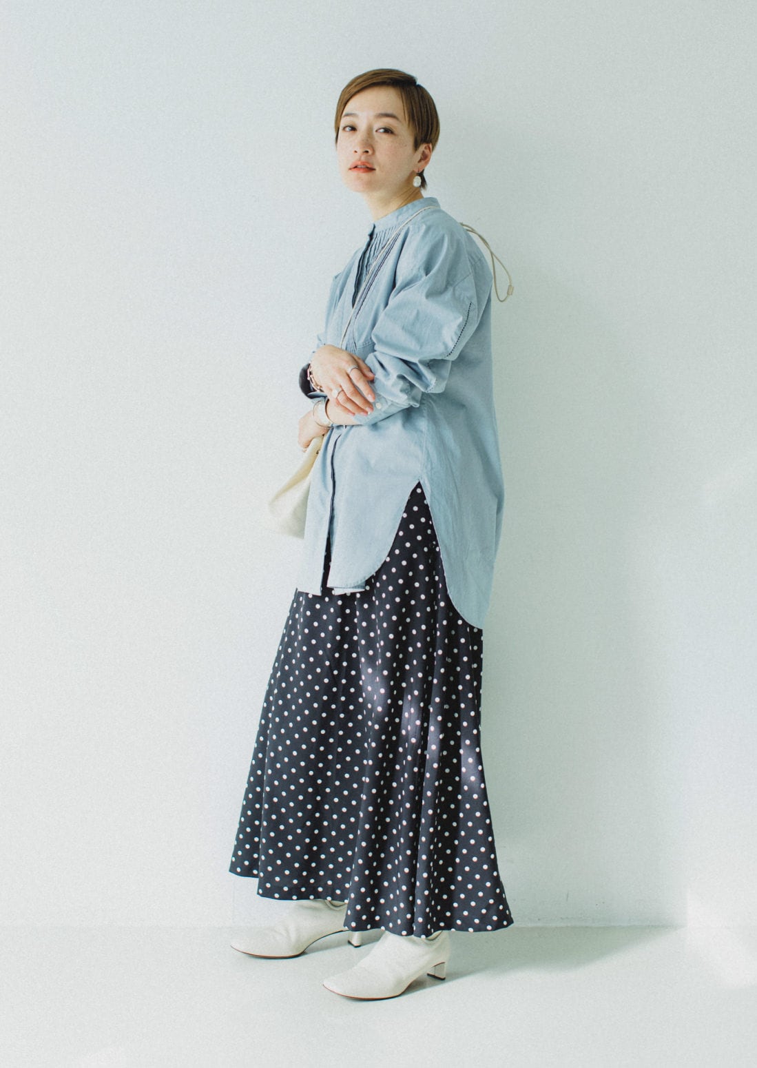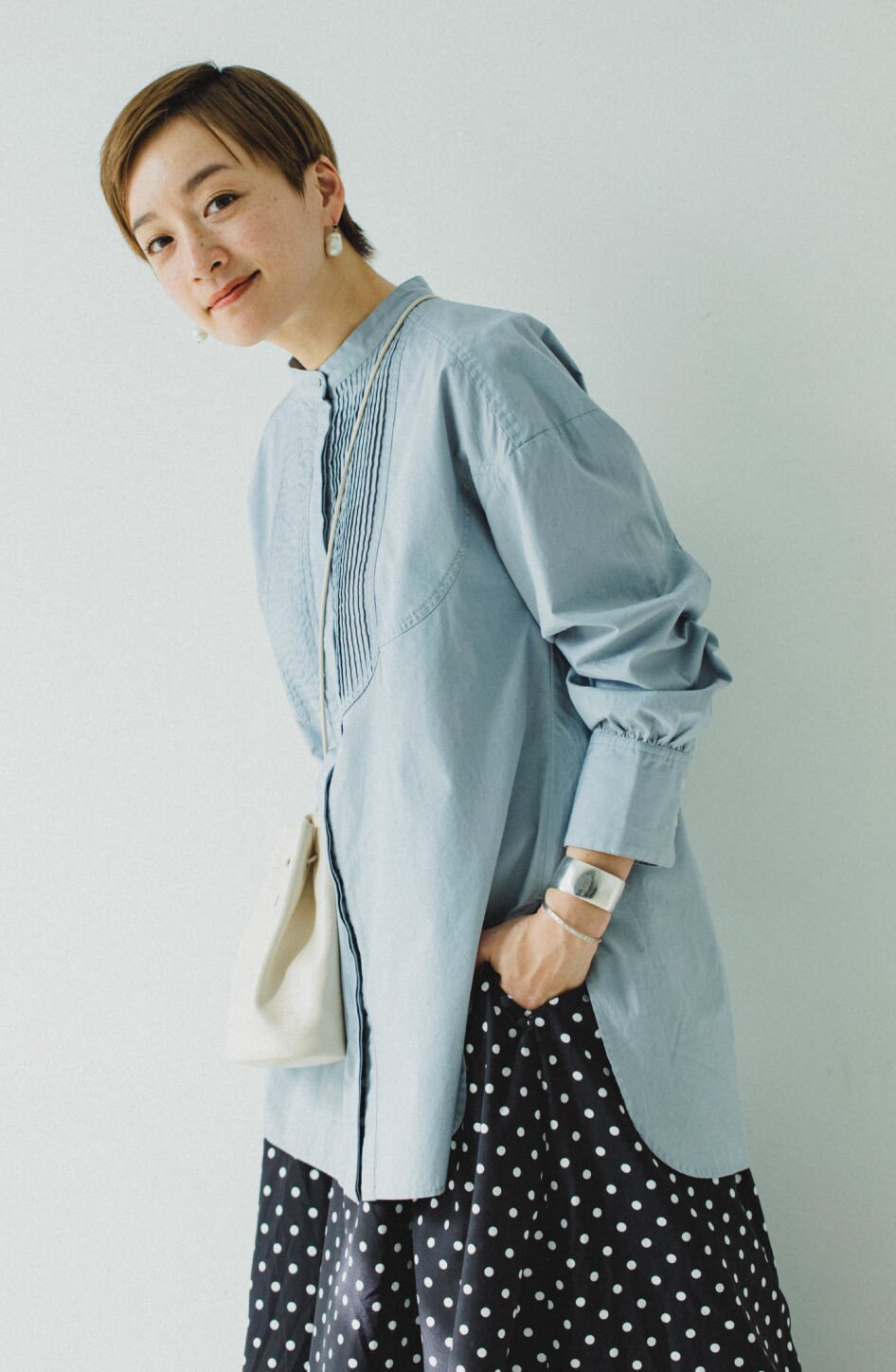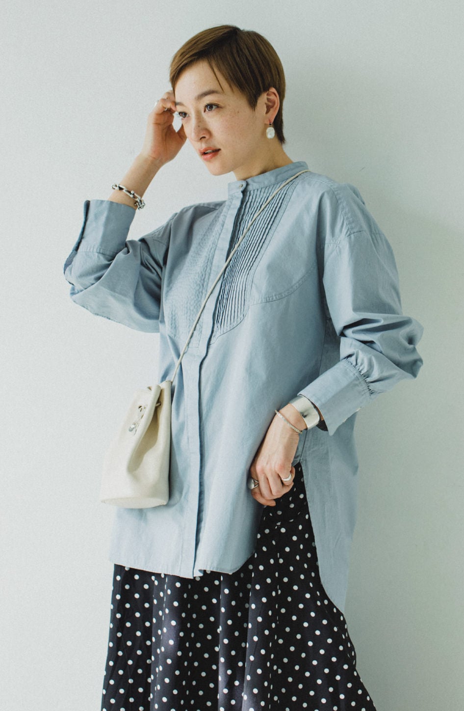 清潔感たっぷりの“フロントタックシャツ”と