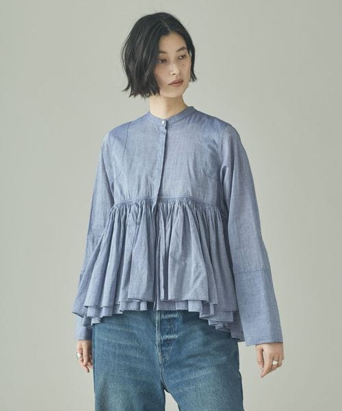 【先行予約】シャンブレーレイヤードギャザーブラウス