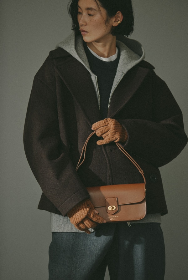 Double face knit hoodie blouson Aura pea coat Wool twill wrap pants