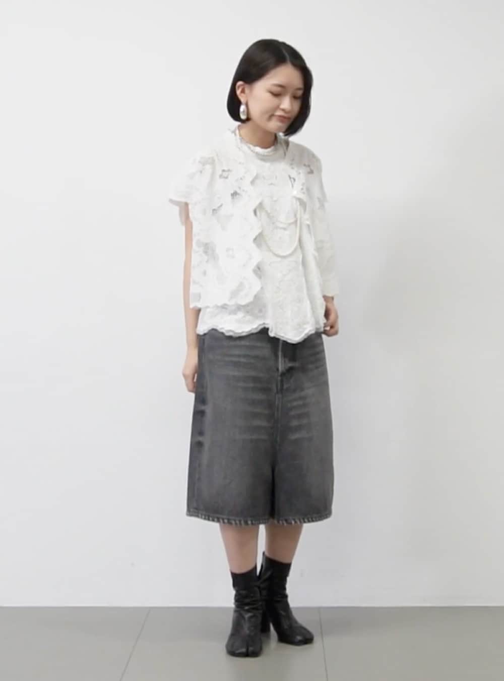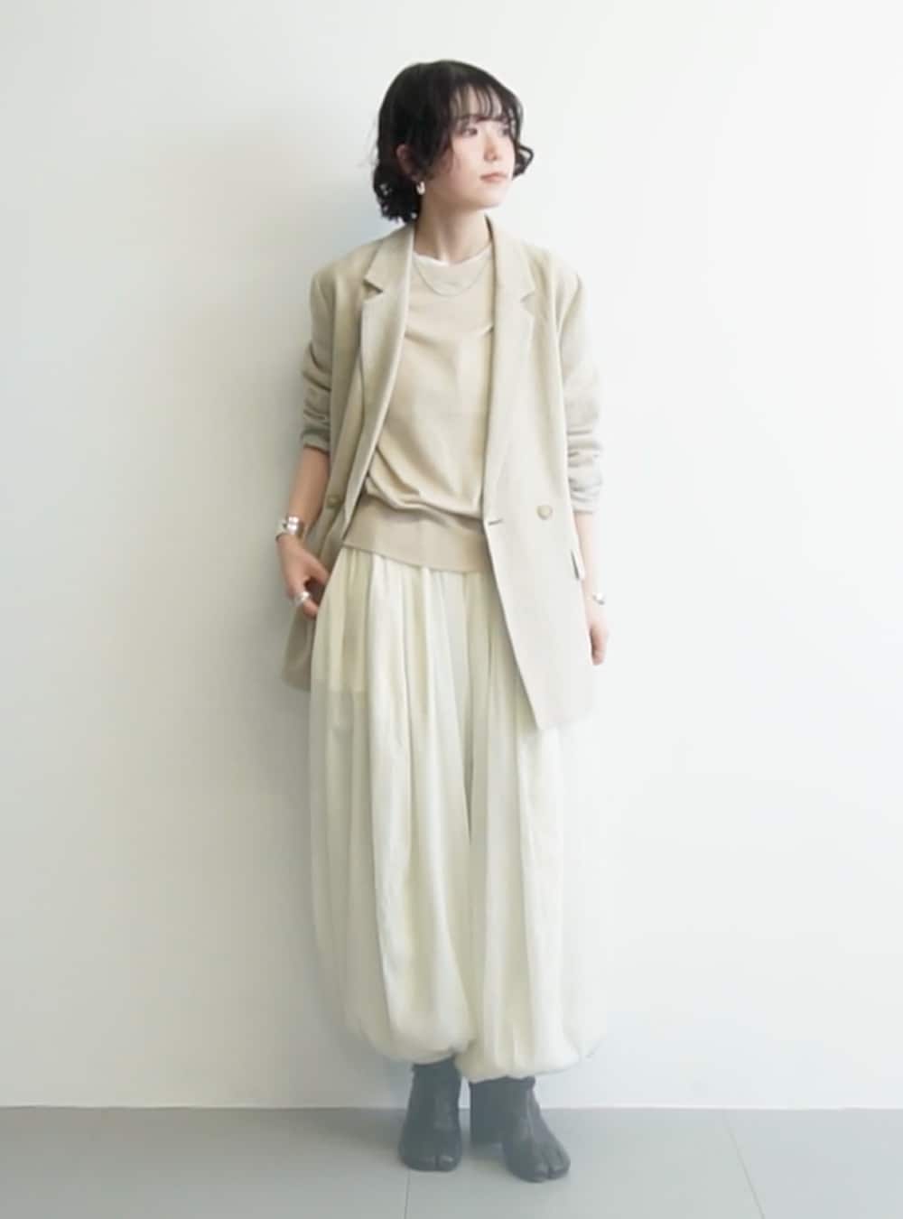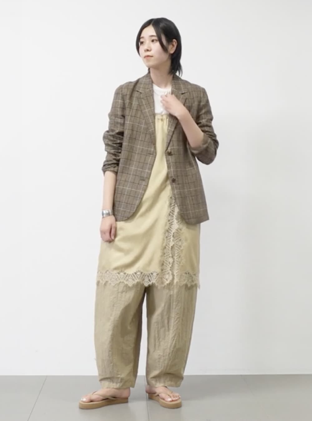 ▼動画内のスタイリンググレンチェックジャケット <5AWARENESS>ロングスリーブTシャツ 2WAYレーススリットスカート サルファーダイドロストパンツ TKEES LILY店舗限定 <CSG>シルバーカレンバングル