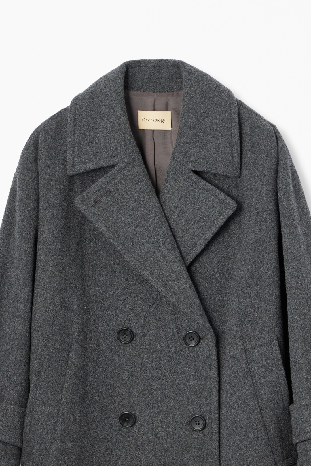 ゆったりとしたシルエットと大きな衿が特徴的な、軽くて着心地の良い定番のウールメルトンPコート。デイリーに使いやすい膝上のミディ丈で、厚手のニットの上にも楽に羽織れるサイズ感。すっきりとしたボトムスやトレンドのロングブーツと合わせてメリハリの効いたスタイリングを楽しんで。