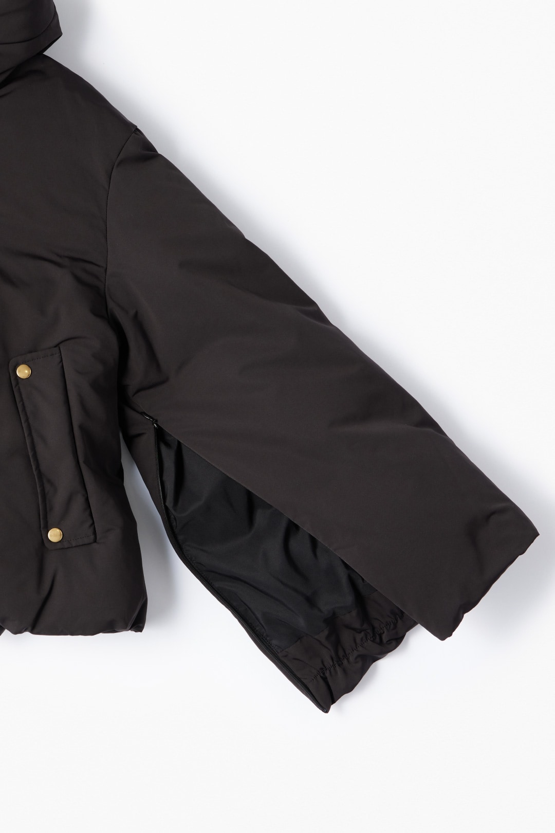 袖のファスナーを開閉することで、ベルスリーブ風からポンチョ風まで様々な着こなしが楽しめるデザイン。バランスの取りやすいショート丈で、ワンピースやボリュームのあるボトムスとも相性抜群。 カジュアルになりすぎないマットな質感が上品な印象。