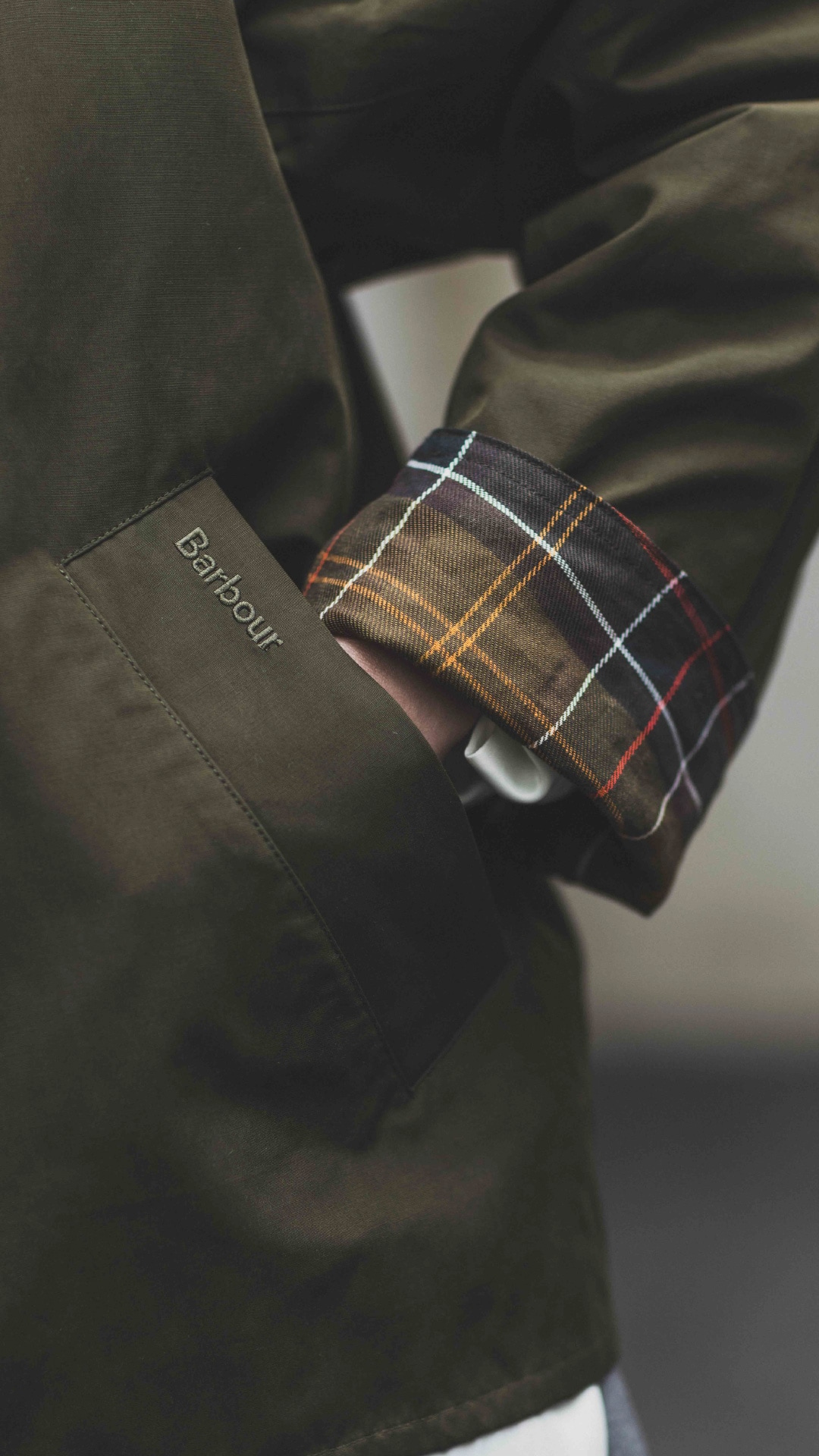 Barbourのアーカイブから、フロントジップとジッパープルにはゴールドとシルバーのミックスを採用し