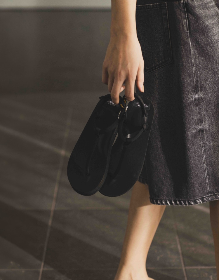 今回の別注は、SUICOKEの優れた機能性と快適な履き心地に、カレンソロジーらしい都会的なエッセンスを落とし込んだ大人のサンダル。 最大のこだわりは、カジュアルをそぎ落とし抜け感を演出する絶妙なボリュームの厚底ソール。計算された2.5cmの高さが、安定した歩きやすさとさりげないスタイルアップを同時に叶えます。スポーティーな中にもゴールドのアクセントや上品でマットなフェイクレザーの質感が、ラフな休日にはもちろん、きれいめな装いにも驚くほど馴染みます。 日常を心地よくそしてスタイリッシュに彩る、まさに大人のためのサンダルです。