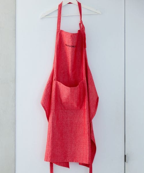 <数量限定>コットンシャンブレーエプロン レッド