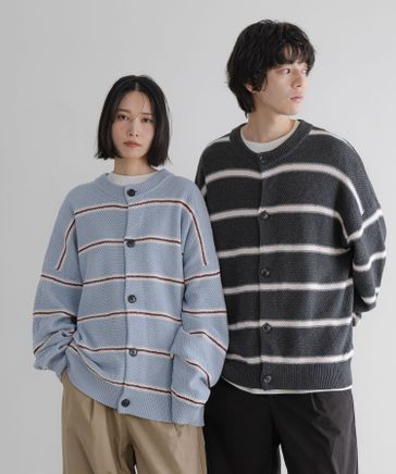 【LFM(U)】ボーダーニットクルーカーディガン【UNISEX】