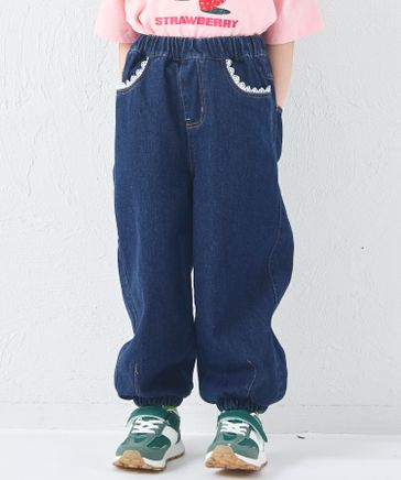 ガールズ レース 裾ゴム カーブデニムパンツ