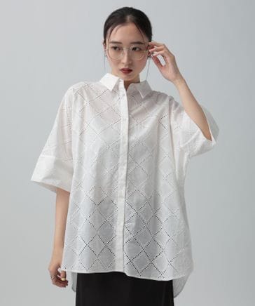 ハーフスリーブ刺繍シャツチュニック