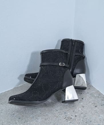 【LADIES】レースチュールヒールブーツ