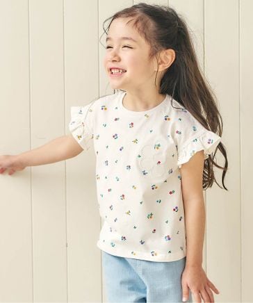 【apres les cours】WEB限定ハート・フラワーアップリケフリルTシャツ