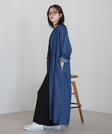 【India Fabric】ピンタックデニムシャツワンピース / 大人カジュアルロング