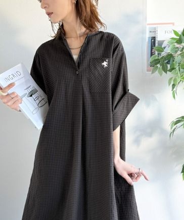 【接触冷感機能付き】胸刺繍入りポケットデザインロールアップサッカーワンピースce1010544