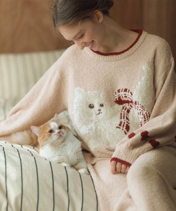 【ホイップクリームのように柔らかな肌ざわりとあたたかさ。】キャットホイップリーパジャマ