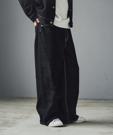 配色ステッチ/ワイドワークパンツ【セットアップ対応】