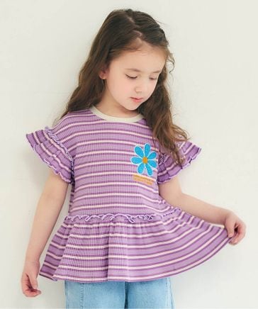 【一部予約】【綿100%】ガールズ アソートフリル ボーダーTシャツ