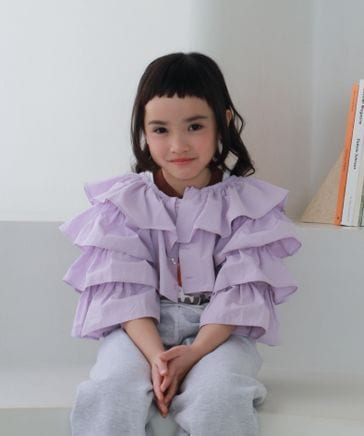 【綿100%】ガールズ 袖フリル カラーボーダーロンT