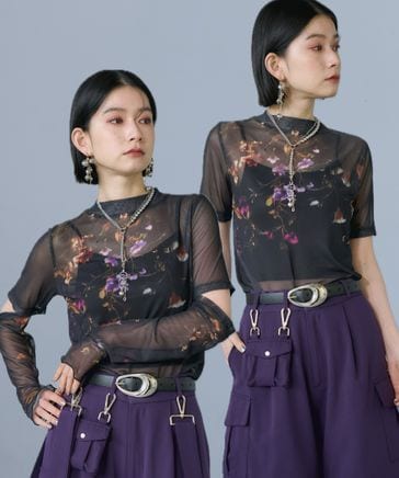【WEB先行予約 SET UP対応 LADIES】2WAYフラワーガラシアートップス