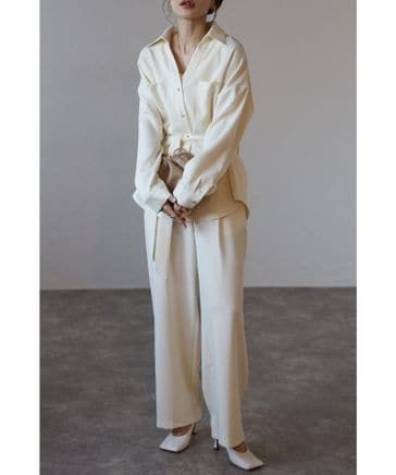 [SET]ライトツイードベルト付シャツ×タックワイドパンツ