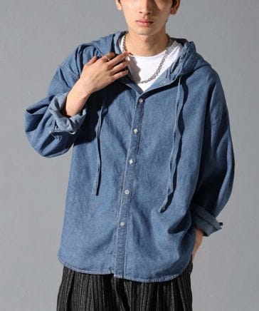 LAND MUSEUM/フードデニムシャツ