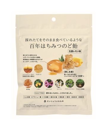 だいじょうぶなもの 百年はちみつのど飴(レザーウッドハニー+ハーブキャンディ)<生姜レモン味>