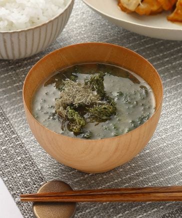 焼きばら海苔と北海道産とろろ入りみそ汁の具