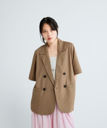 《リネンライクドライシリーズ》ルーズ切り替え5分袖Wジャケット