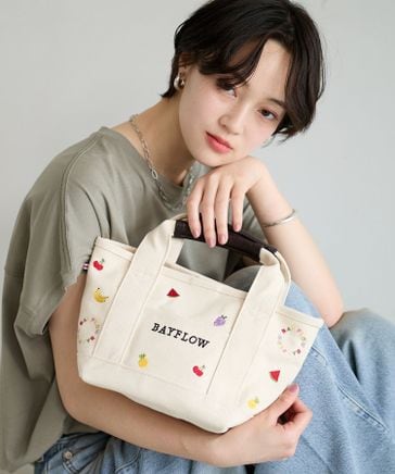 [サブバッグやランチバッグに]フルーツ刺繍ロゴトートS