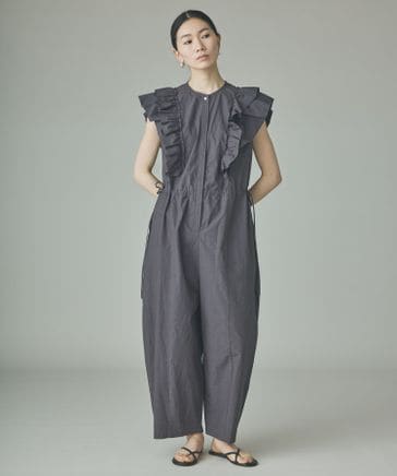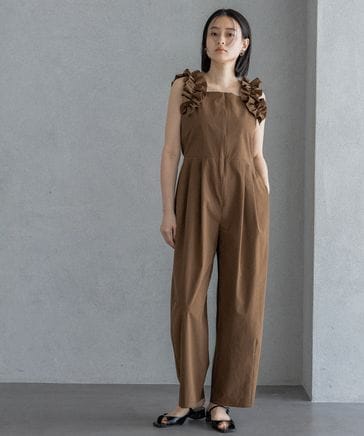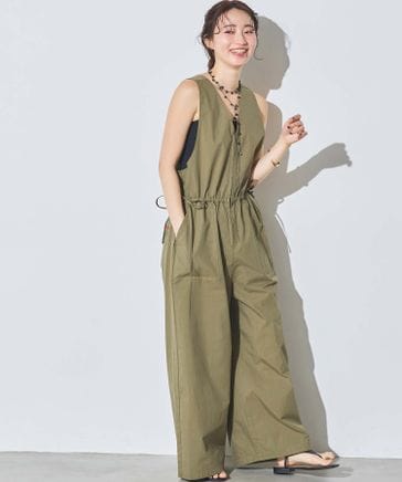 落ち感ワイドでつくる、大人の抜け感。バックリボンサロペットパンツ ce1240122