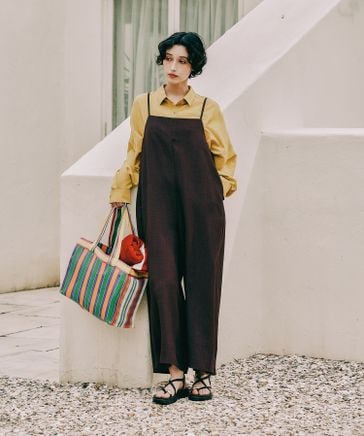 落ち感ワイドでつくる、大人の抜け感。バックリボンサロペットパンツ ce1240122