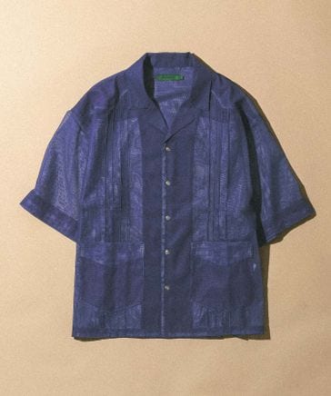 カラミ編み/スカシフラワー柄シャツ