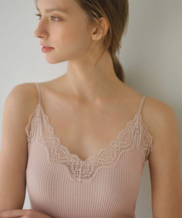 【さらっとした着心地。シャツや透けトップスのインにも◎】オーガニックコットンレーストリムキャミ