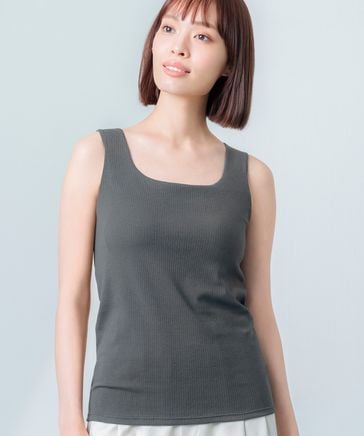 【パッド付きでラクちん。透けトップスのインにも◎】オーガニックコットンリブパデットタンク