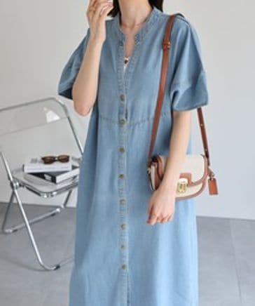 スタンドカラーシャツワンピ