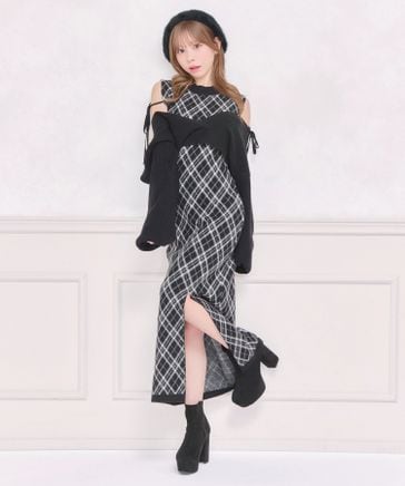 レイヤードニットロングワンピース