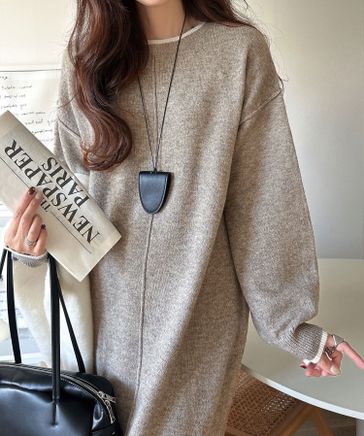 ゆるシルエットで叶える“こなれ感” 配色ニットワンピ 長袖 ロングce1260503
