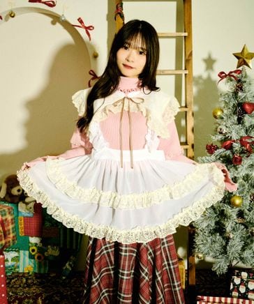 【予約】【クティールとレトロ】【着丈が選べる♪】2wayレースフリルエプロンワンピース