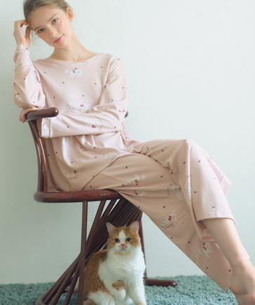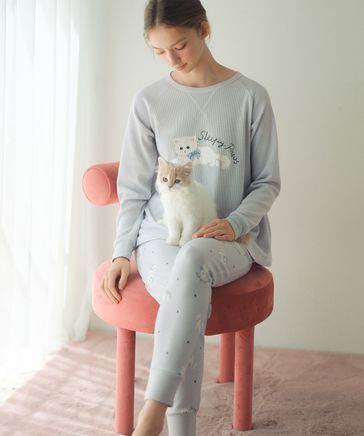 【コットン100%で、あたたかみのあるやさしい肌ざわり。】キャットフランネルシャツパジャマ