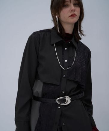 【SET UP対応 LADIES】ジャガードアシメプリーツシャツ