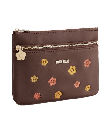 バイカラーデイジー刺繍 2ファスナーポーチ