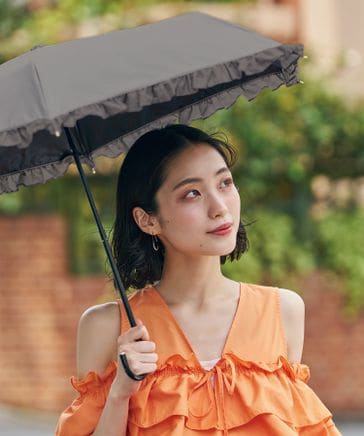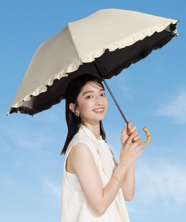 最強の日傘「UVO」 折りたたみ2段 親骨55cm フリル Wpc.