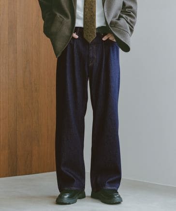 【SET UP対応】ベルテッド2タックデニムパンツ