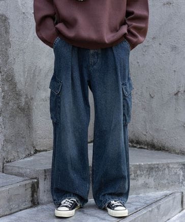 ヴィンテージライク/デニムバギーカーゴパンツ