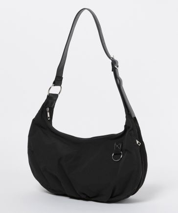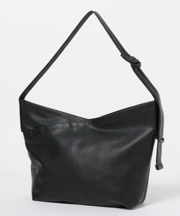 シンセティックレザーコンビ/タックラウンドショルダーバッグ